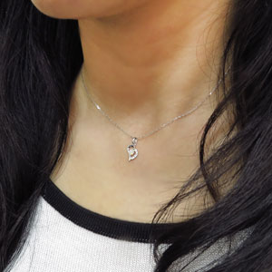 ダイヤモンドを散りばめたオープンハートが胸元を華やかに飾ります。