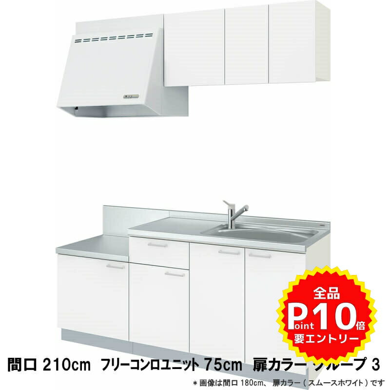 【6月はエントリーでP10倍】コンパクトキッチン LixiL Tio ティオ 壁付I型 テーブルコンロ W2100mm 間口210cm フリーコンロユニット75cm 扉グループ3 リクシル 流し台