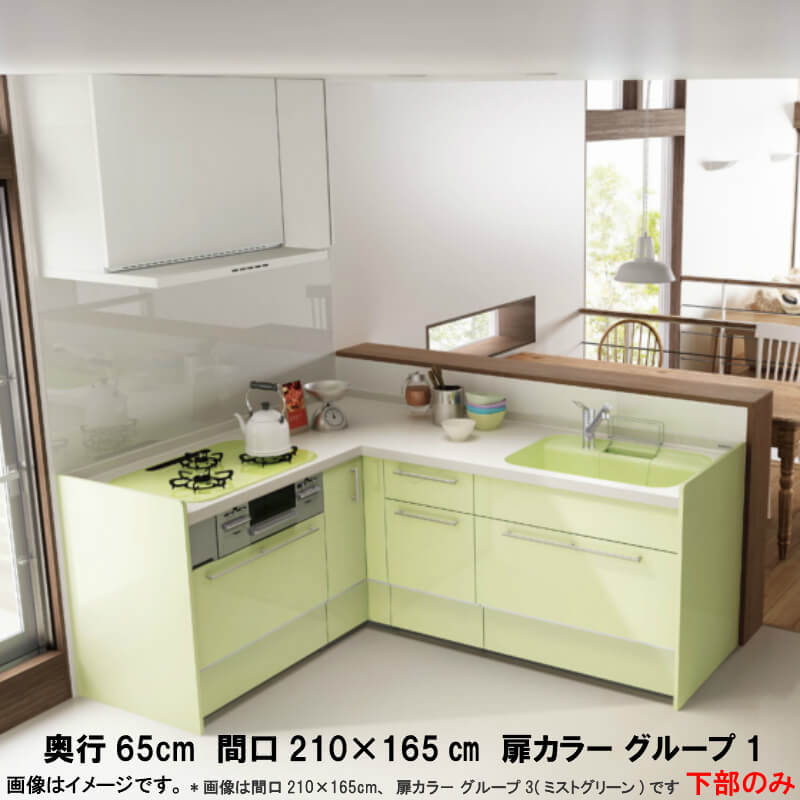 システムキッチン アレスタ リクシル 壁付L型 シンプルプラン フロアユニットのみ 食器洗い乾燥機なし W2100×1650mm 間口210×165cm×奥行65cm グループ1 建材屋