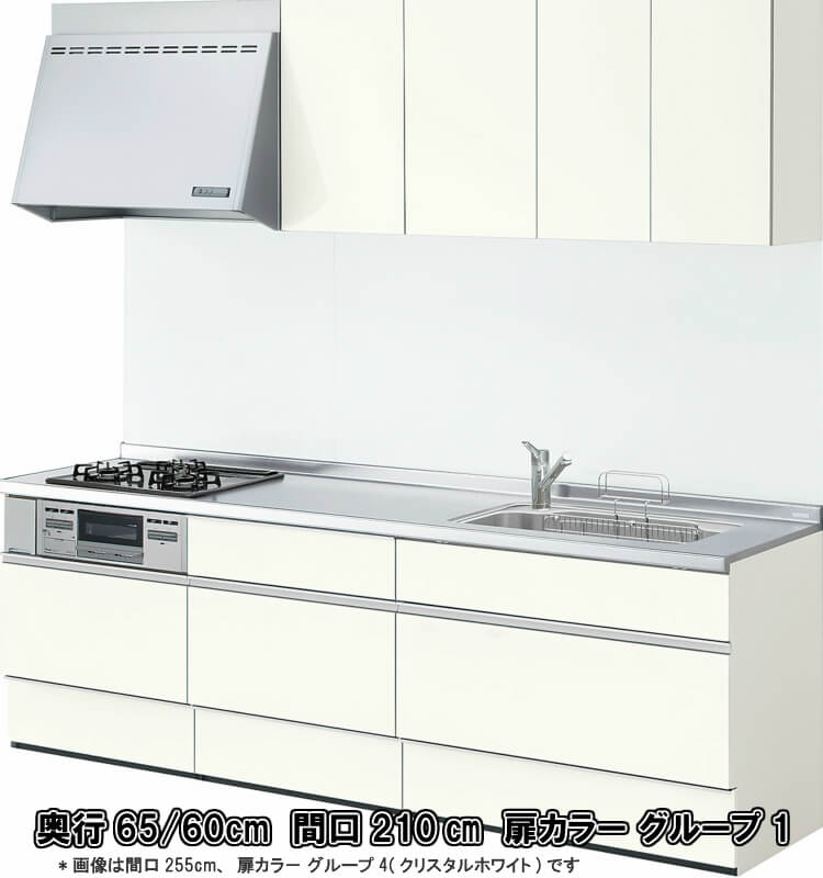 コンパクトキッチン LixiL Tio ティオ 壁付I型 トレーボード W2100mm 間口210cm 3口コンログリル付き 扉グループ1 リクシル システムキッチン 流し台 建材屋