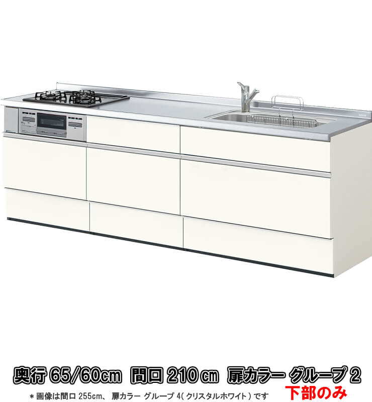 システムキッチン アレスタ リクシル 壁付I型 基本プラン フロアユニットのみ 食器洗い乾燥機付 W2100mm 間口210cm×奥行65cm グループ5 建材屋