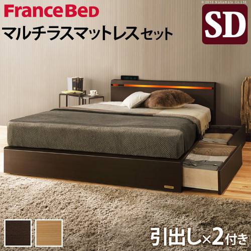 【送料無料】【フランスベッド】 宮棚 照明付ベッド 引出しタイプ セミダブル マルチラススーパースプリングマットレス ナチュラル i-4700545【代引不可】