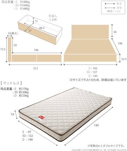 ベッド セミダブル ベット ベッドフレーム おしゃれ 安い 北欧 一人暮らし SD チェストベッド ミドル ベッド下収納 引き出し付き 大容量 収納 ライト 宮付き 枕元 棚 マルチラススーパーS マットレス付き 日本製 国産 ヘッドボード コンセント