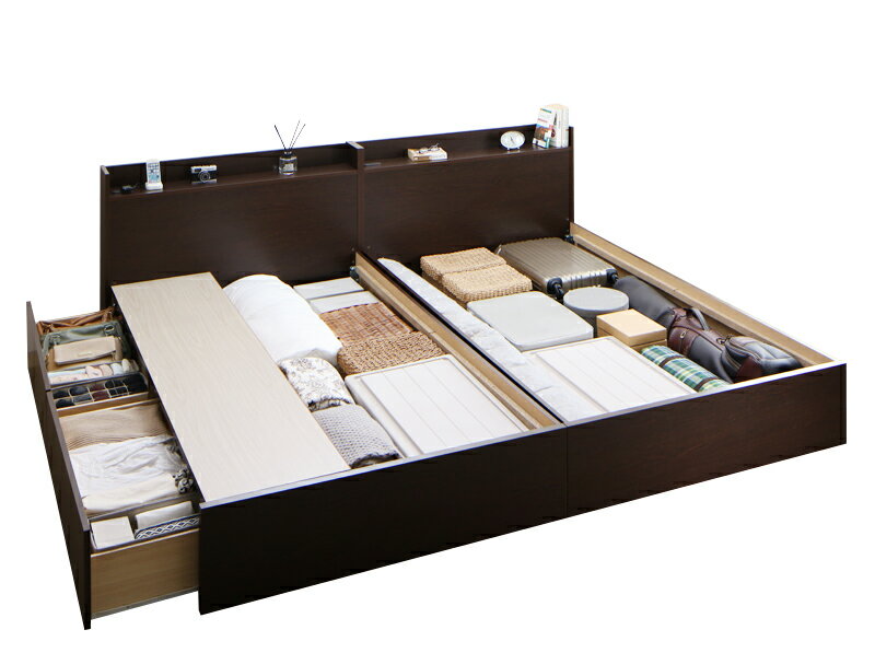 送料無料 収納ベッド 【組立設置付 A+Bタイプ ワイドK240(SD×2)(床板仕様)】 連結ベッド Ernesti エルネスティ ベッドフレームのみ 棚付き コンセント付き 引き出し収納 ワイドキングベッド