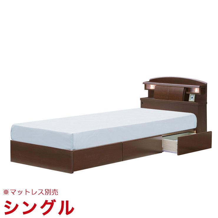 引出し付棚付ベッドフレーム カルダン (シングル)ブラウン マットレス別売 フレームのみ 輸入品
