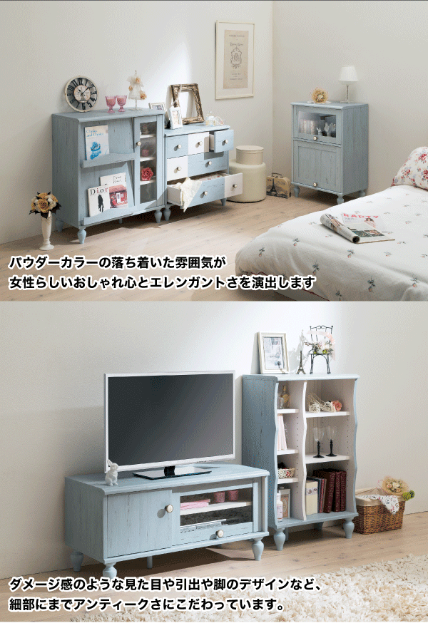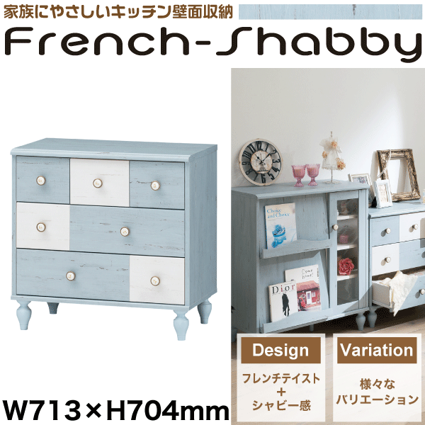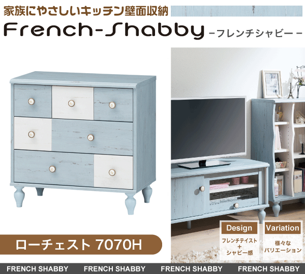 【送料無料】フレンチテイストにシャビー感をプラスした収納家具シリーズ フレンチシャビー ローチェスト アンティーク調 ダメージ加工 引き出し 収納【RCP】【FRS-7070H】