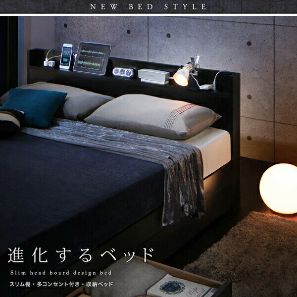 スリム棚 多コンセント付き 収納ベッド Splend ベッドフレーム マットレスセット ダブル 収納付きベッド 木製 ベット ダブルベッド 引き出し プレミアムポケットコイルマットレス付き 高級感 男前インテリア ブルックリン モダン 塩系 おしゃれ 一人暮らし